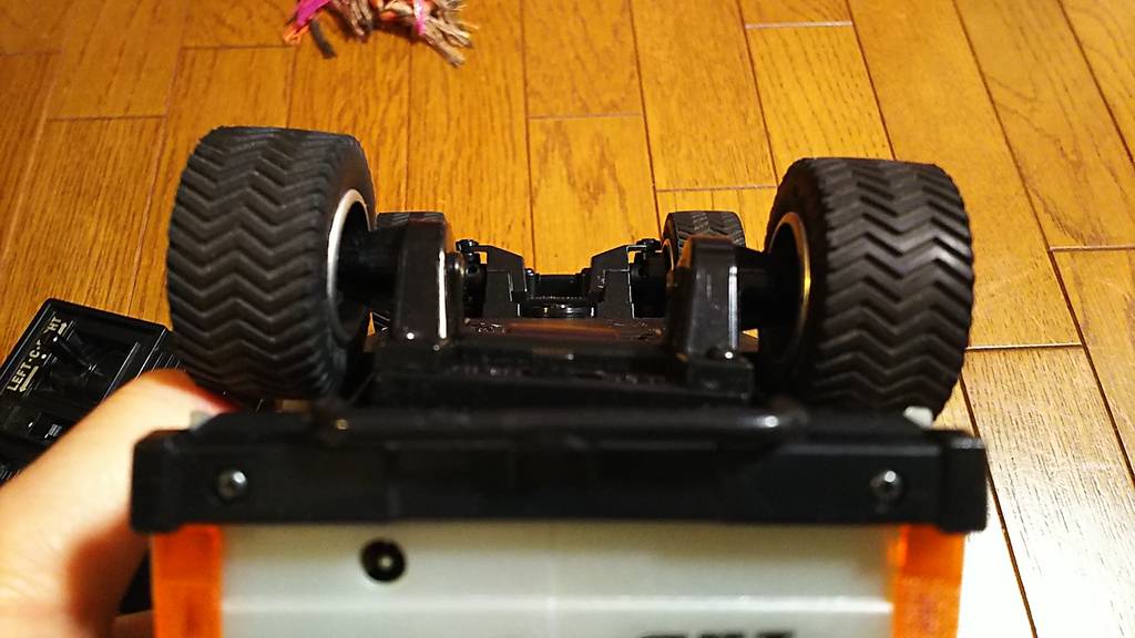 フルタイム4WDで後輪はデフギア付きで左右にシーソーもします。かなり車高が高いので内部のギア構造が気になる所です。