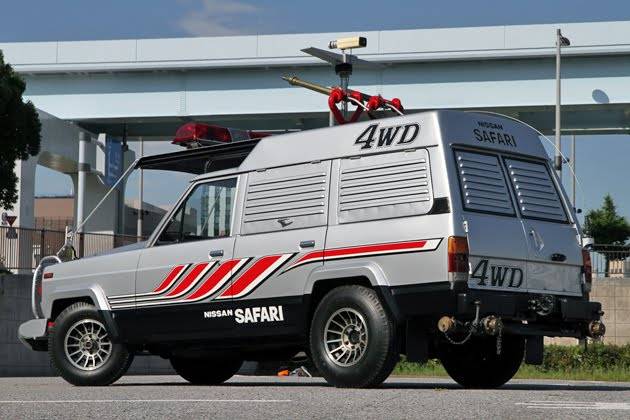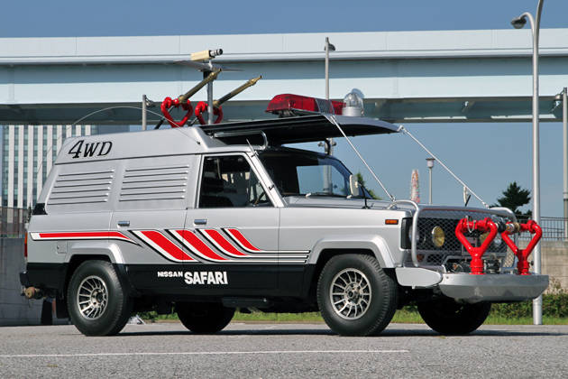 渡哲也さん演ずる大門団長が特注した放水銃を4門備えた四駆マシン、サファリ4WDは前方にスライドしたルーフからせり上がる放水銃で敵の車を引っくり返す事も可能でした!放水する時はタンク車を連結していましたね。