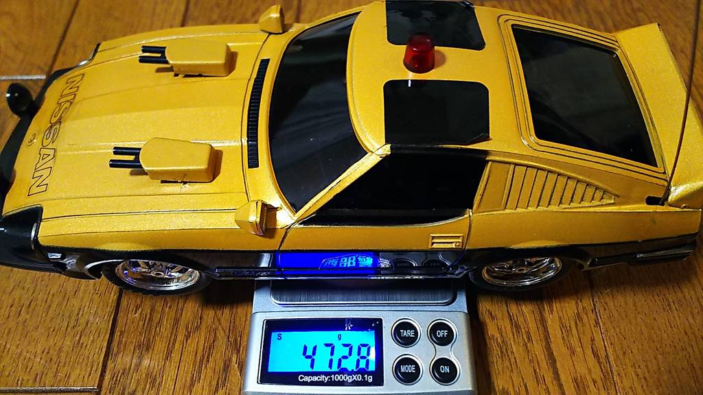 このラジコンカーの商品名はスーパーZではなく何故か「武装パトロールカー」と言う名称で、全長22.5cmの1/20スケールですが電池を含む車体重量は473gもあり、かなり重みを感じます。