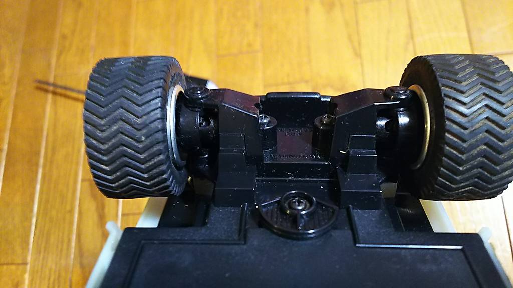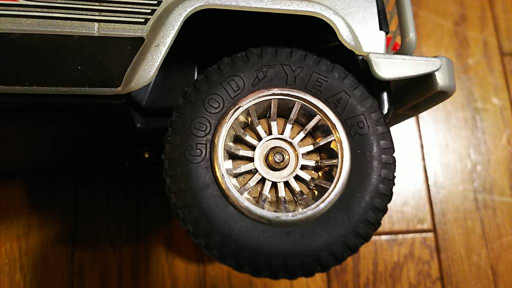 ゴムタイヤも綺麗なので問題なく動くだろうと思いましたが、色々操作してみてもリアタイヤが前後に回るだけでステアリングは僅かに反応するのみ。しかも後輪も完全には操作出来ていません…(^_^;)