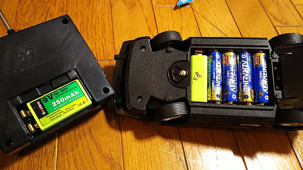 車体電源 単3電池4本+9V1本、送信機 9V1本