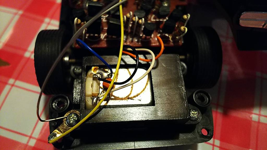 この頃のヨネザワ製の1/20scaleのトイラジは他にもランチャストラトスを持っていますが、大概リアギアが全て金属製です。そしてステアリング部分には角形のマイクロモーターとポテンショメータが装備されていました。