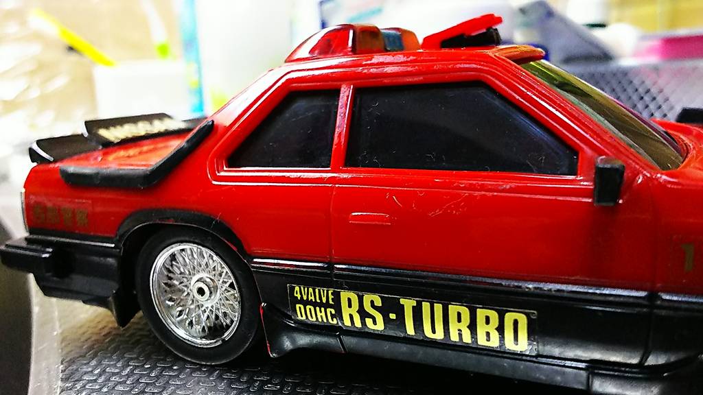 3台編成のRS軍団の指揮及び攻撃車両であるRS-1が商品名「RSターボ」として1983年に販売され、ルーフ上には回転灯と20mmの機関砲が2丁装備されています。赤と黒にカラーリングされた車体は市販車にも採用されていて精悍な雰囲気を醸し出しています。