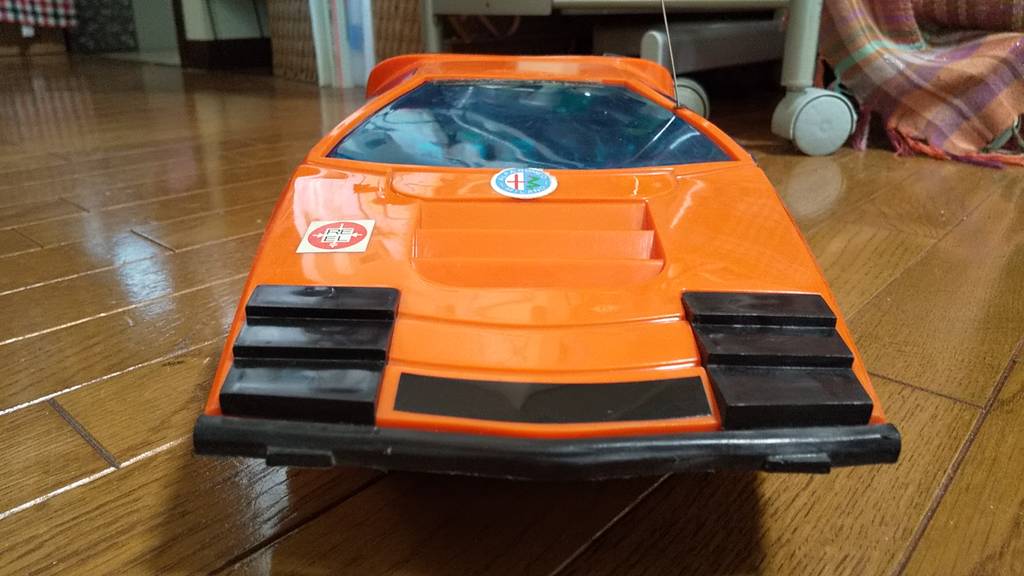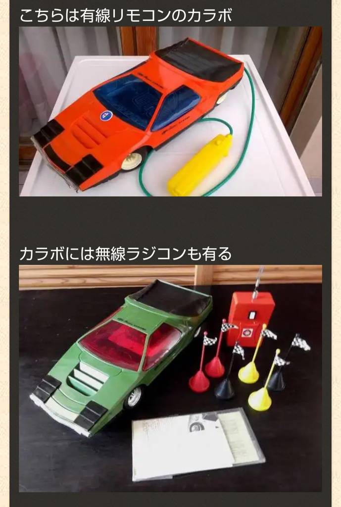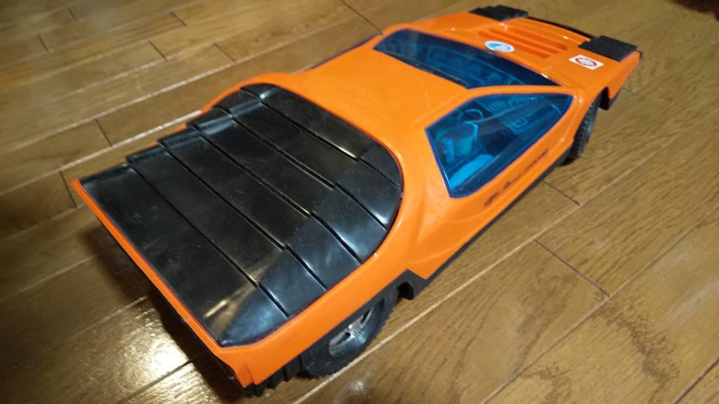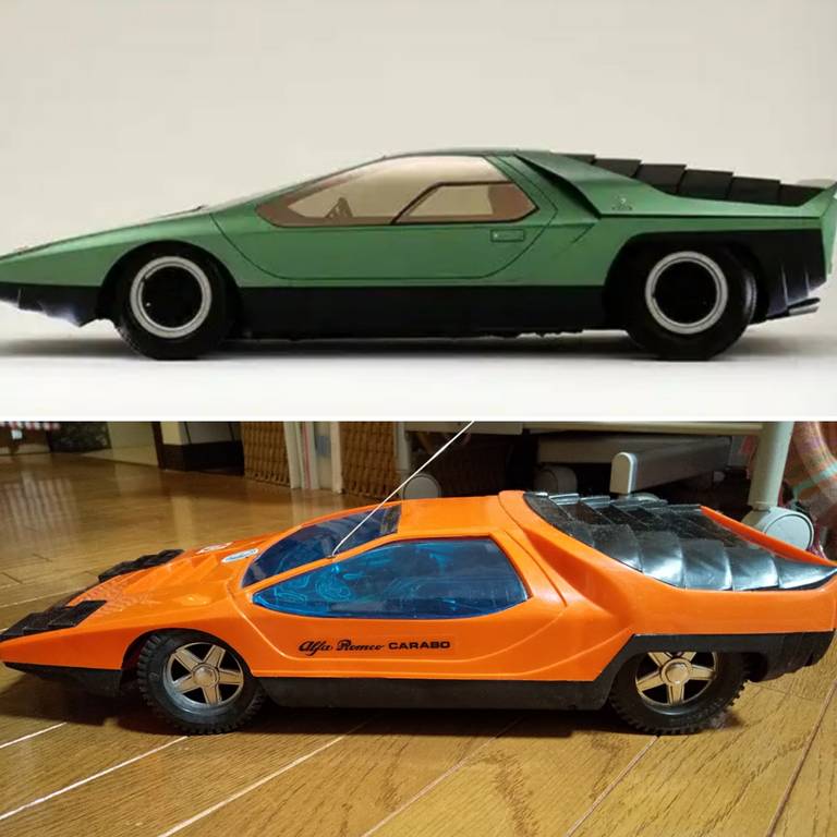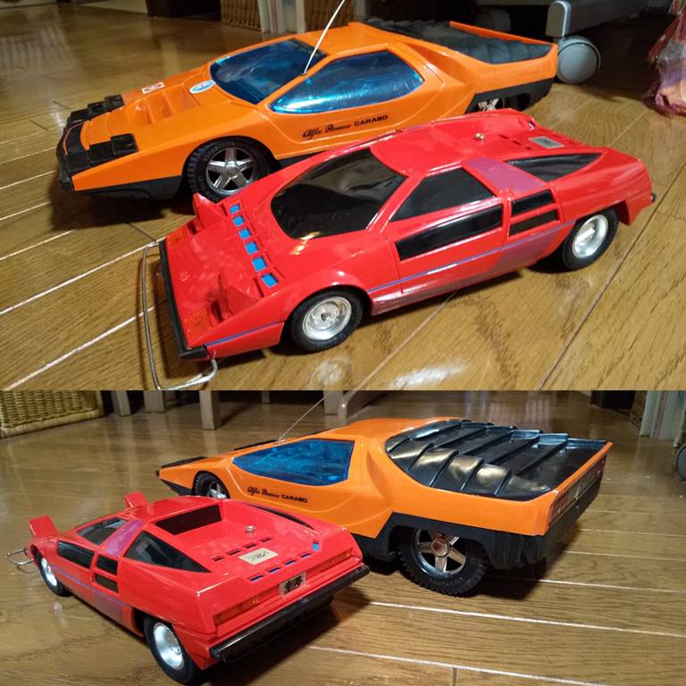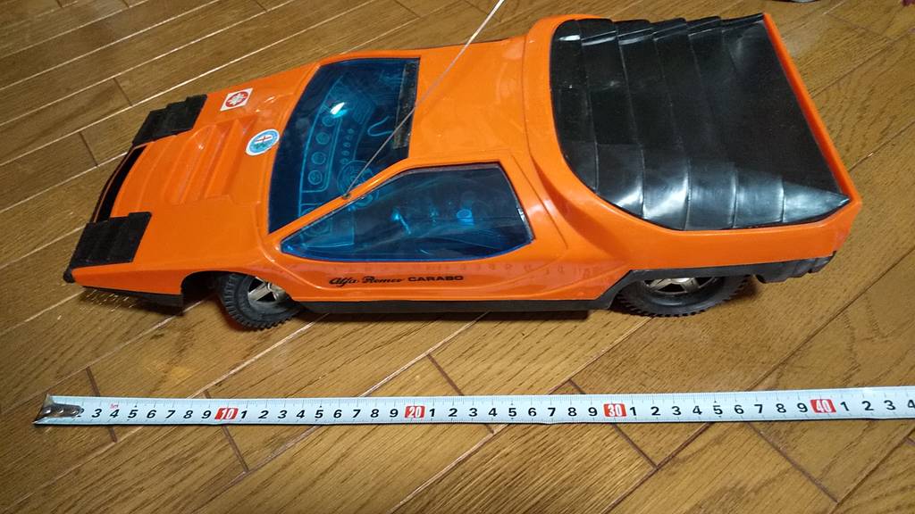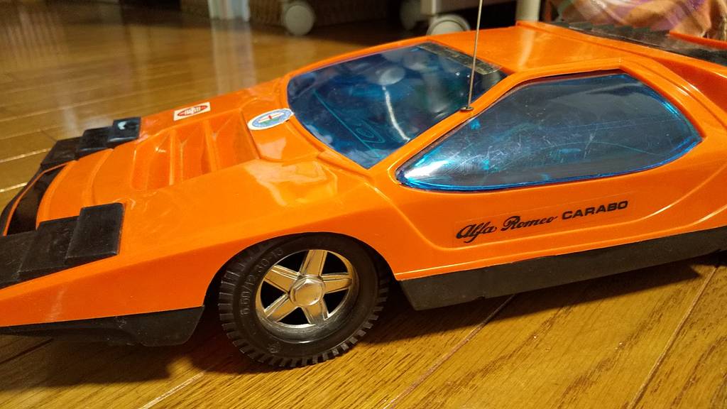 さて、今回は前回の童夢-零に似たクサビ型コンセプトカーの古いトイラジを御紹介したいと思います。1970年代、あのランボルギーニ カウンタック以前にクサビ型のデザインが流行し、今回の『アルファロメオ カラボ』もそのような形となっています。