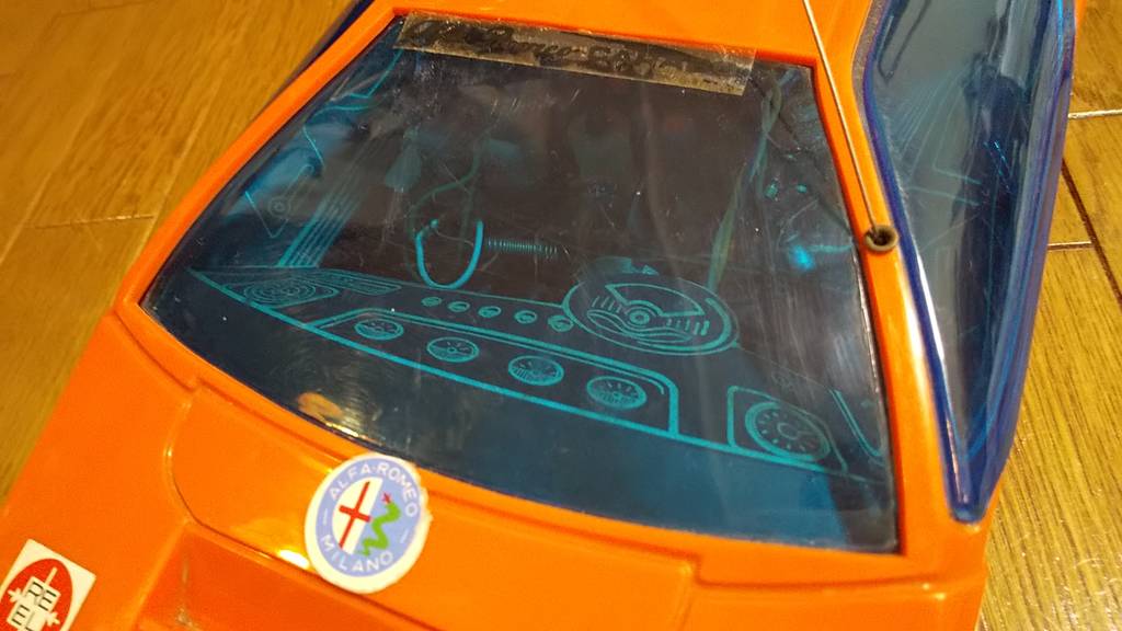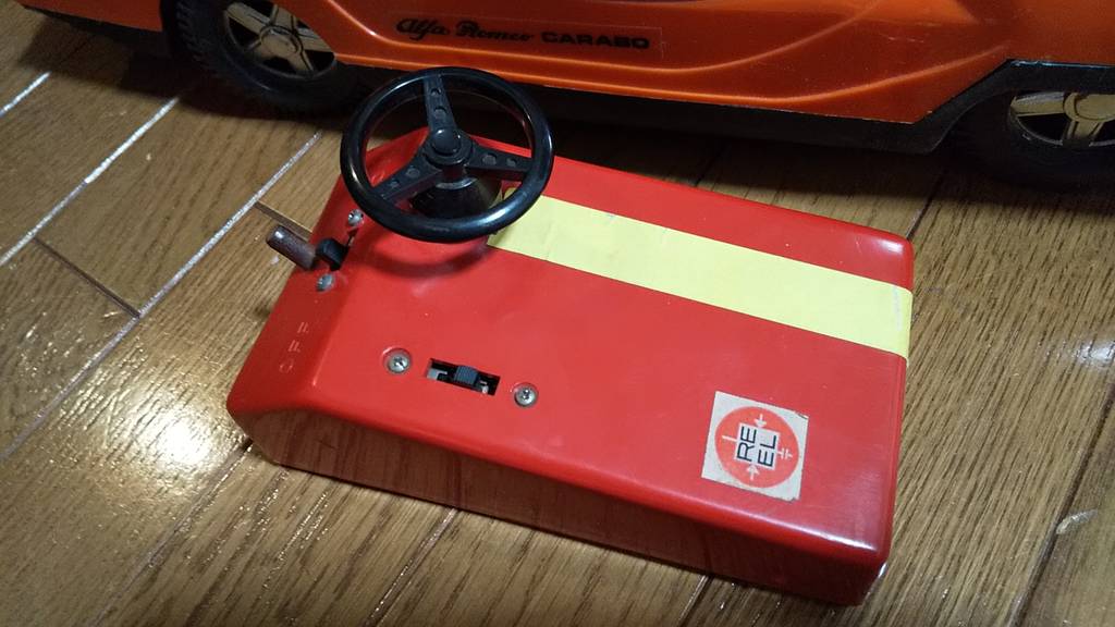 ランチャストラトスの時は送信機が無かったので操作は出来ませんでした。このアルファロメオ カラボはメカを載せ替えれば問題なく操作出来そうですが、そこまでやる必要はなさそうです。今回はその優雅な雰囲気の外観や年代物のメカを眺めているだけで楽しくなるような稀少なトイラジでした。
