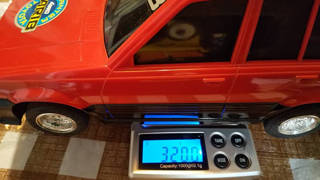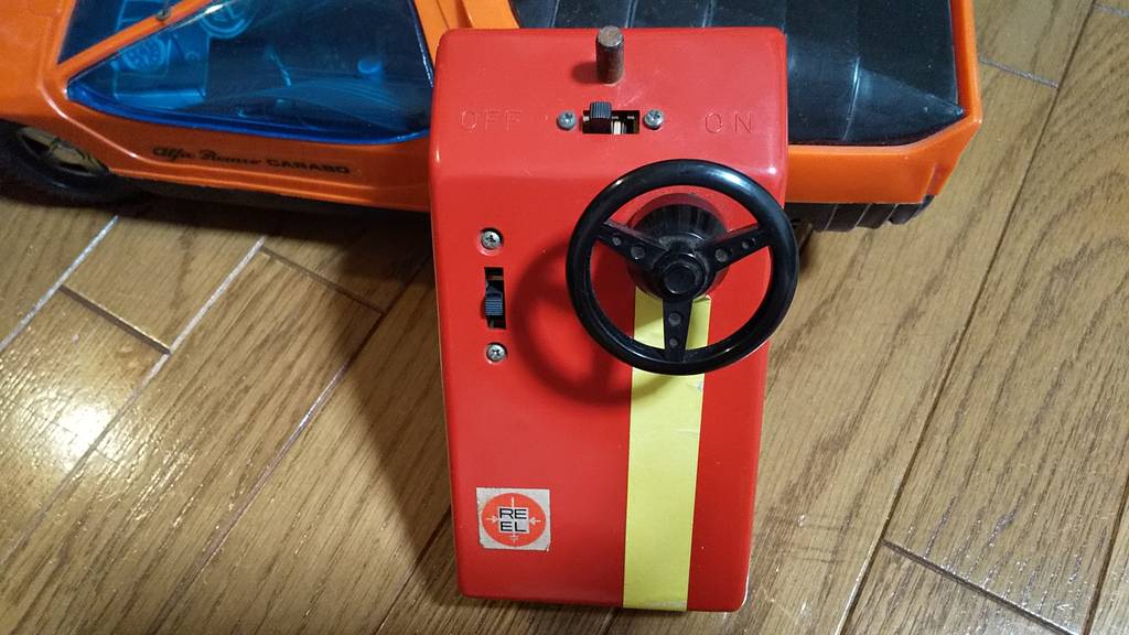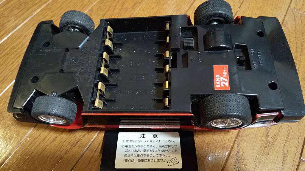 このカラボは1/10scaleで全長40cmとラジコンカーとしてはかなり大きなサイズです。今回は箱無しで三千円程でしたが、送信機も付いていました。車体の汚れは少ないですが、恐らく1970年頃の商品だと思われるので50年前の骨董品のような雰囲気が漂っています。