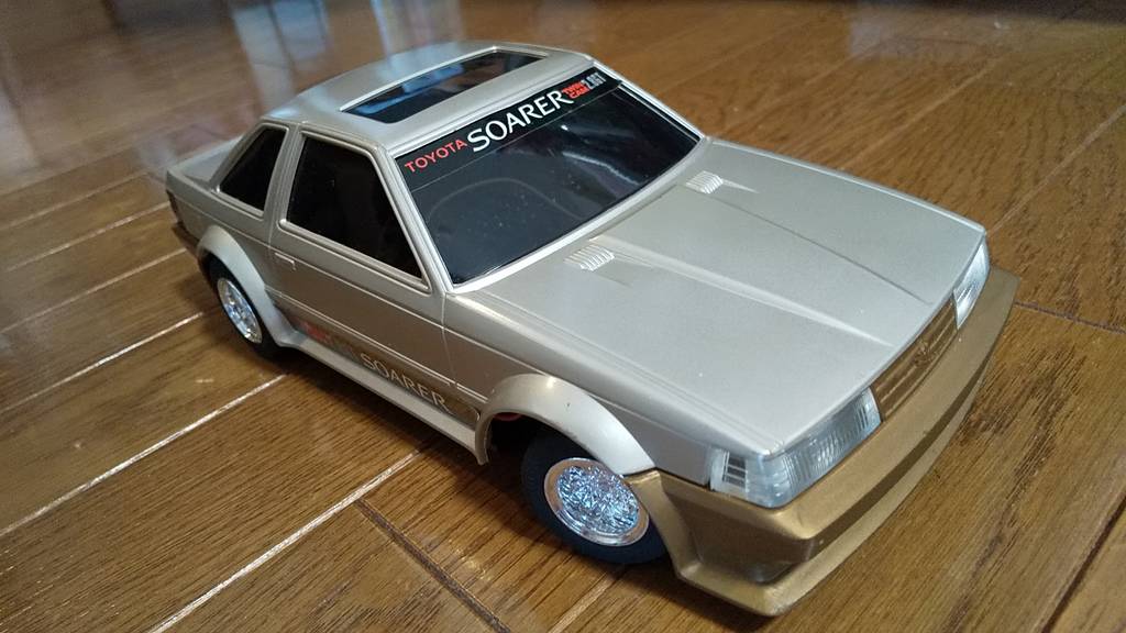 その割にはオークションで四千円にもなりました。ソアラは車種的に人気が高いですね。今回の物は40MHzで、ボディーカラーと周波数は二種類有るようです。TOYOTAのライセンス認証品で他にも同シリーズでTOYOTAの車種が出てそうです。