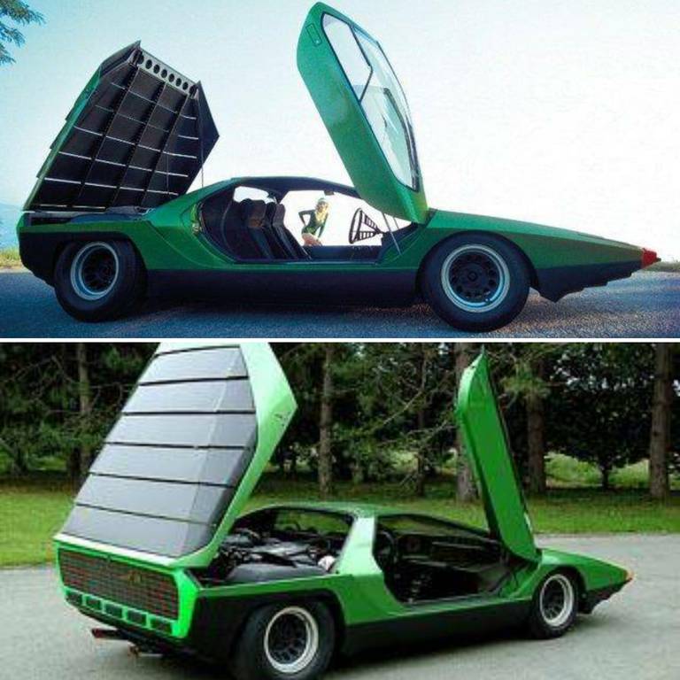 クサビ型の車は屋根が低く乗りにくいでしょうが、カラボが1968年にパリのモーターショーで発表された頃には最先端の空力形状だったのでしょう。今回のカラボはイタリア製のRE-ELトイズと言う玩具メーカー品でして、以前にもランチャストラトスを御紹介した事が有りました。*実車画像はネット引用です。